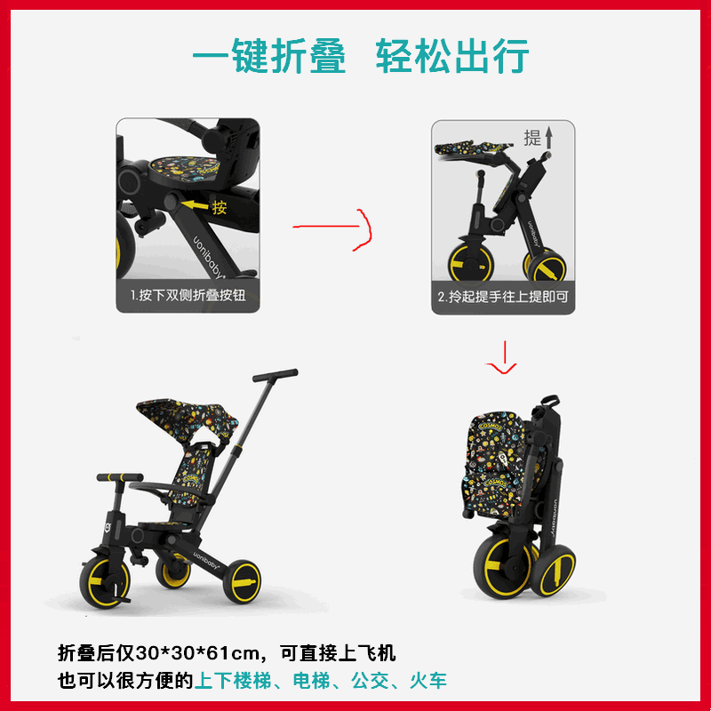 uonibaby children's tricycle stroller artifact stroller baby foldable lightweight baby baby bike
