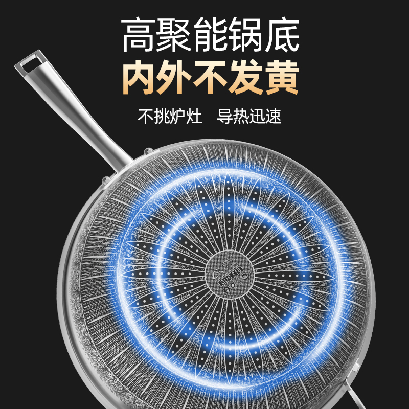 Guiyuemei 316 stainless steel wok 32 without handleGuiyuemei 316 stainless steel wok 32 with handle