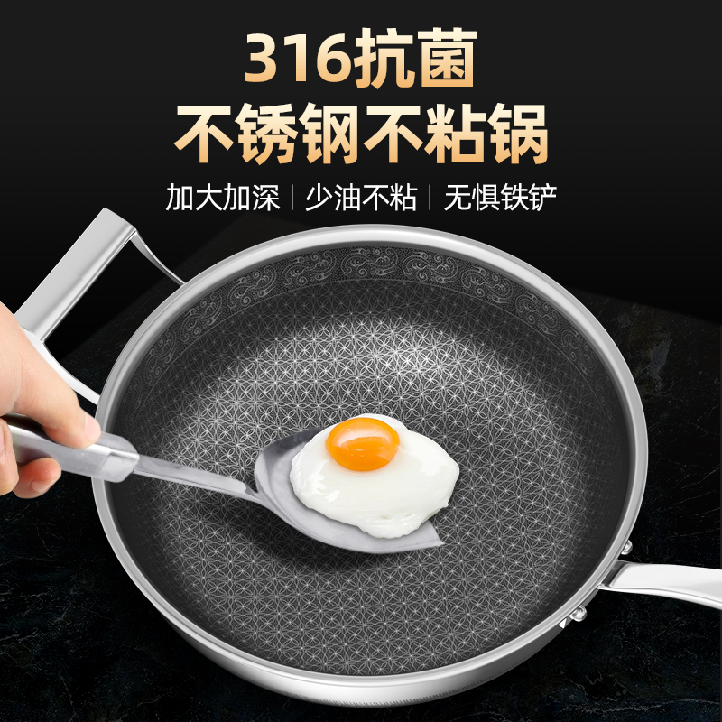 316 stainless steel frying pan non-stick pot household uncoated induction cooker special gas stove suitable for frying pans and pots