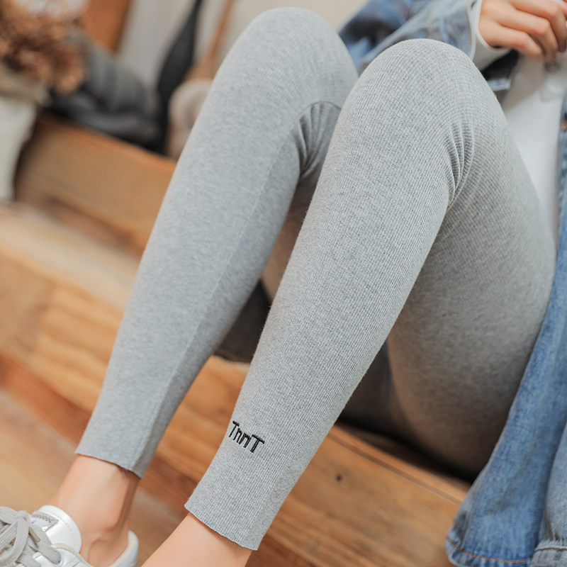 Pure cotton gray inner lap pants female outwear plus size spring autumn season tight body thread high waist elastic display slim fit pants