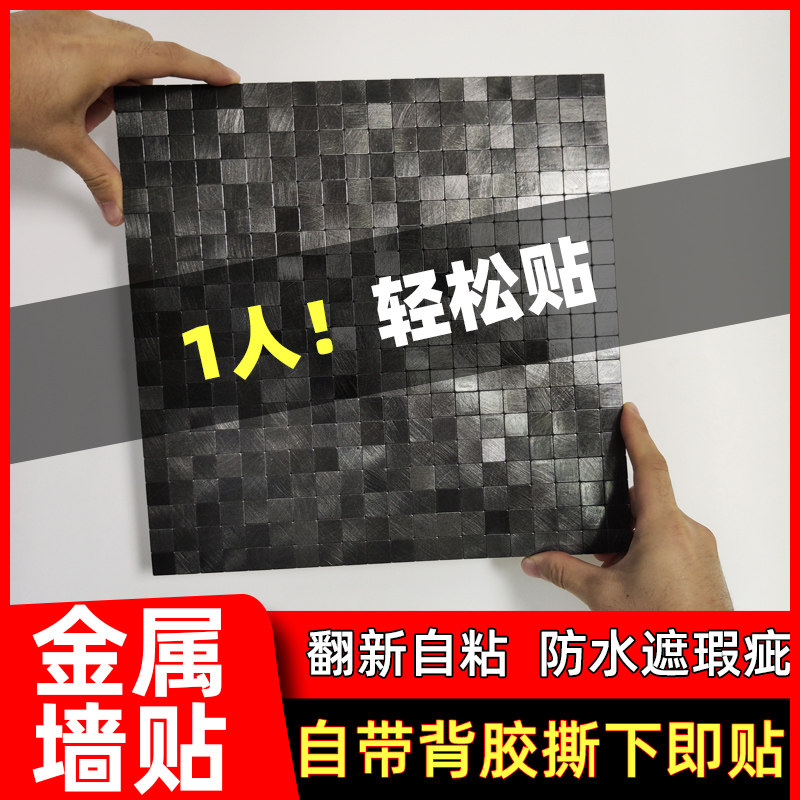 Metal self-adhesive mosaic wall sticker wallpaper background wall black bathroom tile self-adhesive tile stainless steel wall tile