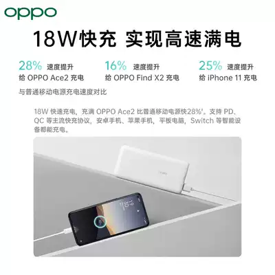(New products on the market) OPPO original mobile power supply 18W fast charge original mobile charging black white 10000mAh mAh capacity usb interface typeec dual interface portable fans