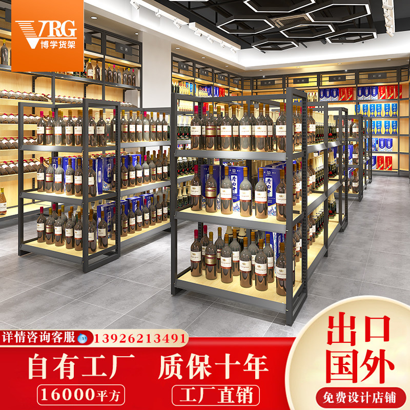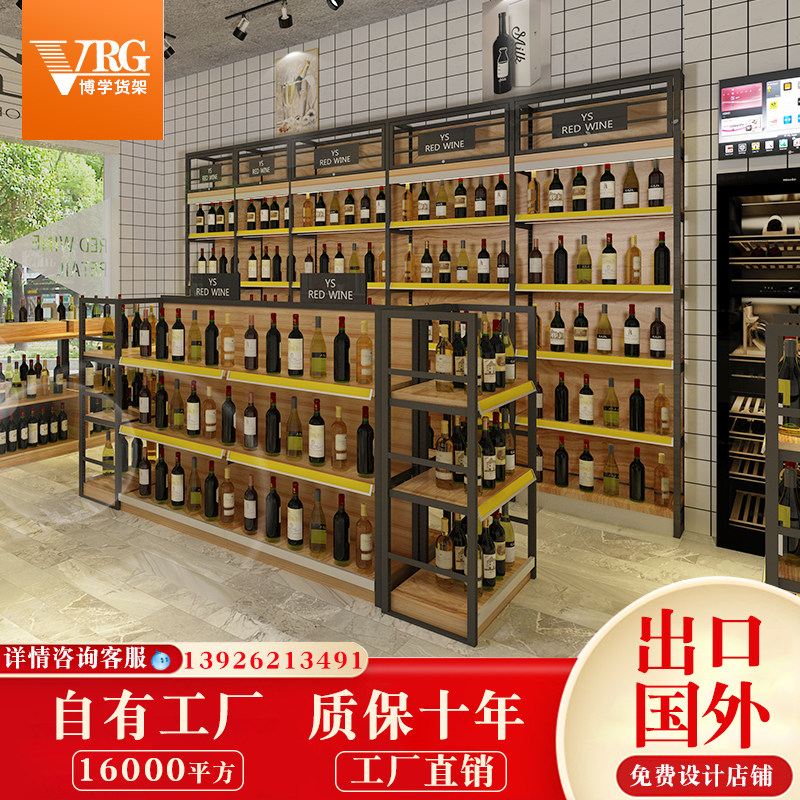 Smoke Hotel Wine Cabinet Shelving Steel Wood Supermarket Red Wine White Wine Mid Island Liquor 1919 Display Cabinet Single Sided Bifacial Commercial-Taobao