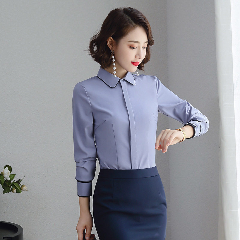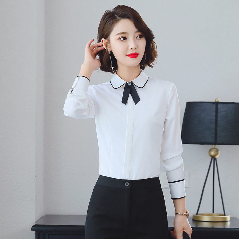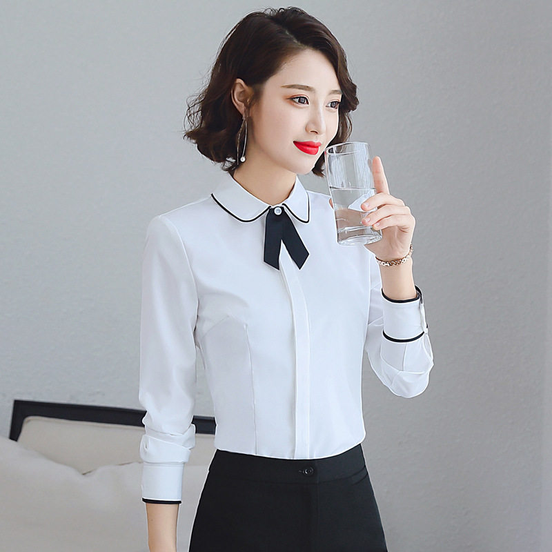 Fate born long-sleeved white shirt women's autumn slim Korean work clothes OL professional shirt large size business dress shirt