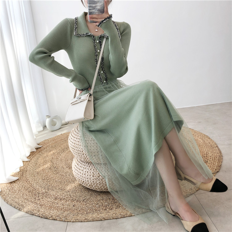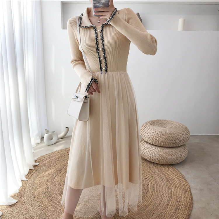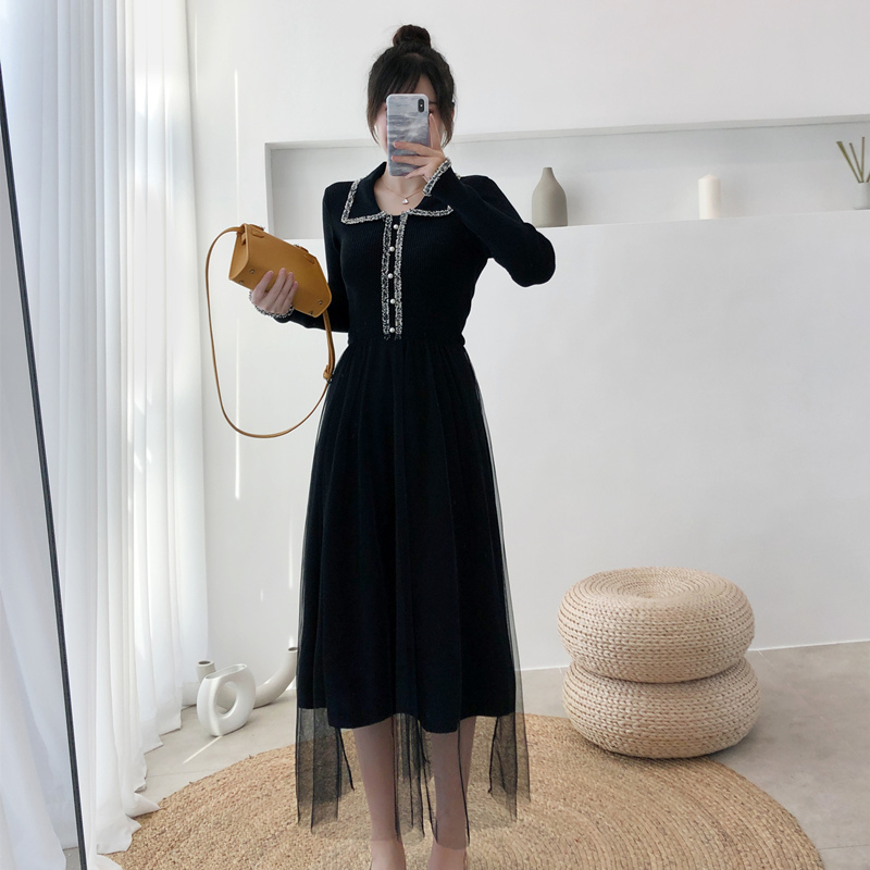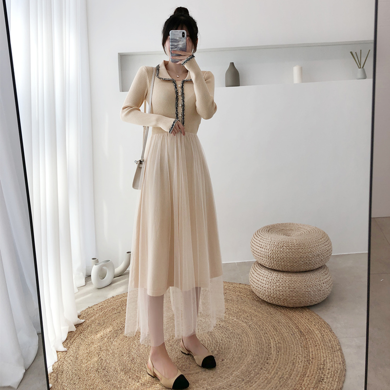 Breastfeeding sweater breastfeeding fashion winter stitching mesh knitted dress bottoming shirt breastfeeding clothes women's autumn and winter clothes