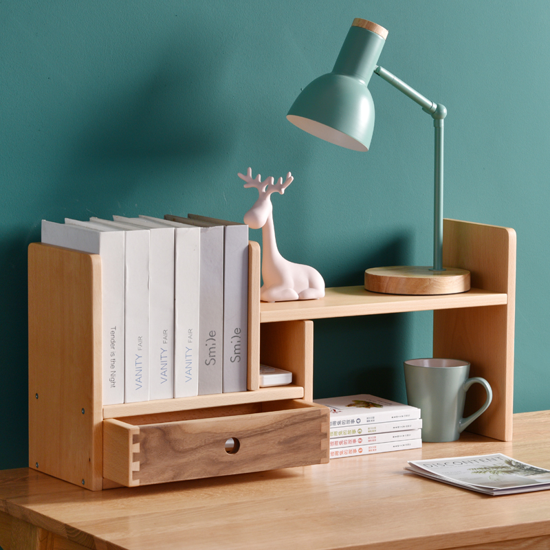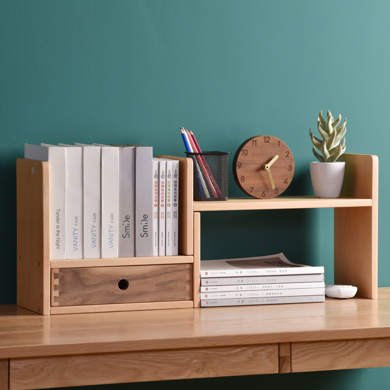 Solid wood desktop bookshelf (telescopic without extraction) Solid wood desktop bookshelf (telescopic with extraction)