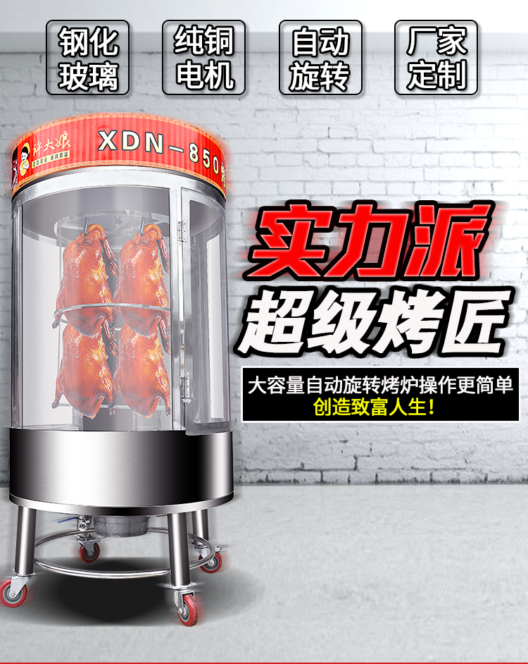 850 type roast duck furnace Electric automatic commercial charcoal coal gas rotary roast chicken fish pork belly roast duck furnace oven