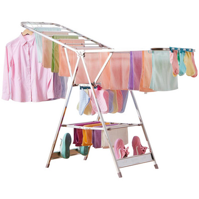 Balcony drying rack floor-to-ceiling folding stainless steel clothes drying rack indoor clothes rack children's diaper household clothes rack