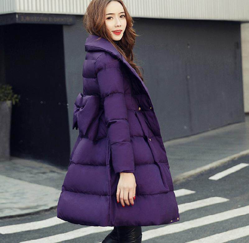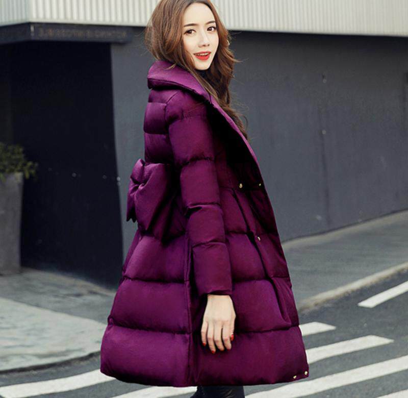 Off-season Korean version of down padded jacket women's mid-length version thickened warm fashion cute wind bow padded jacket with waist and big swing