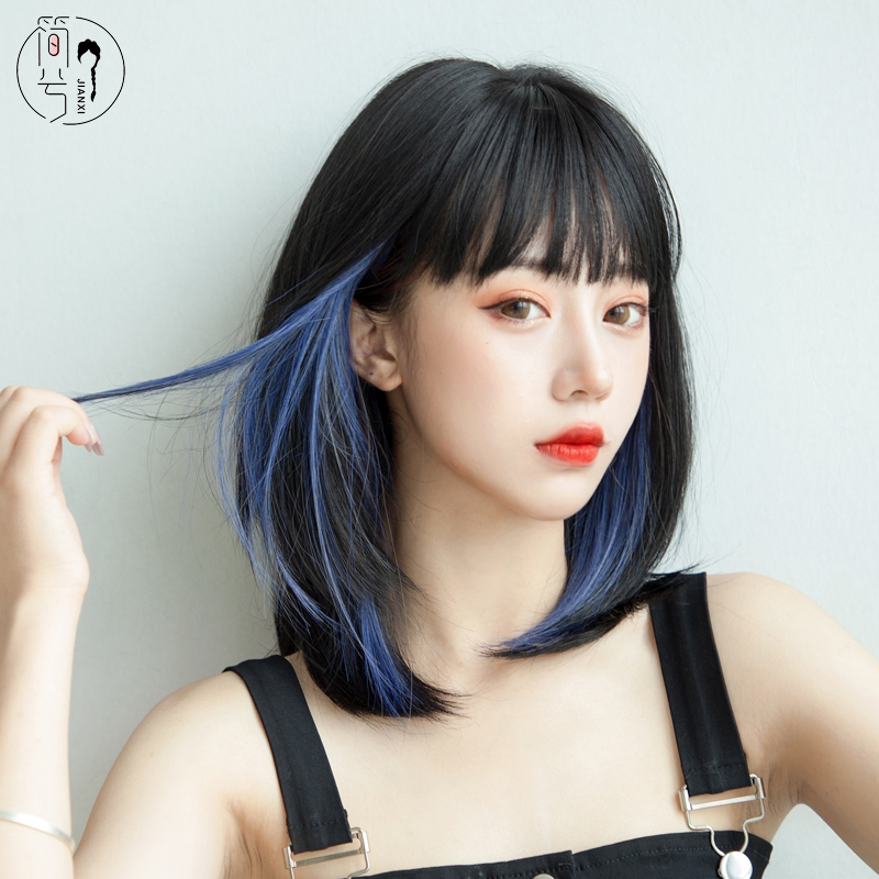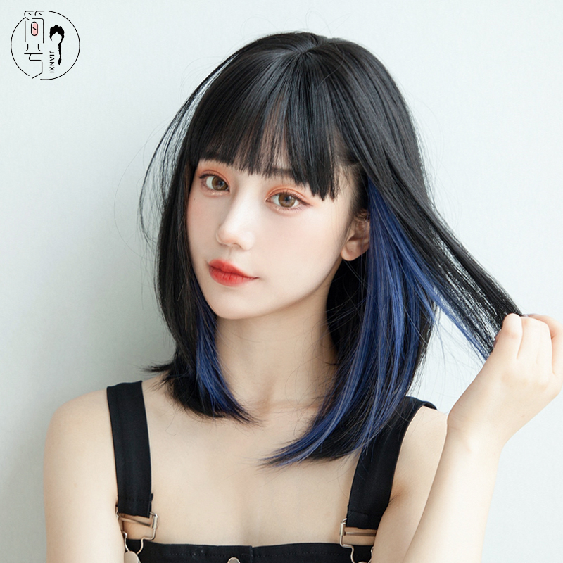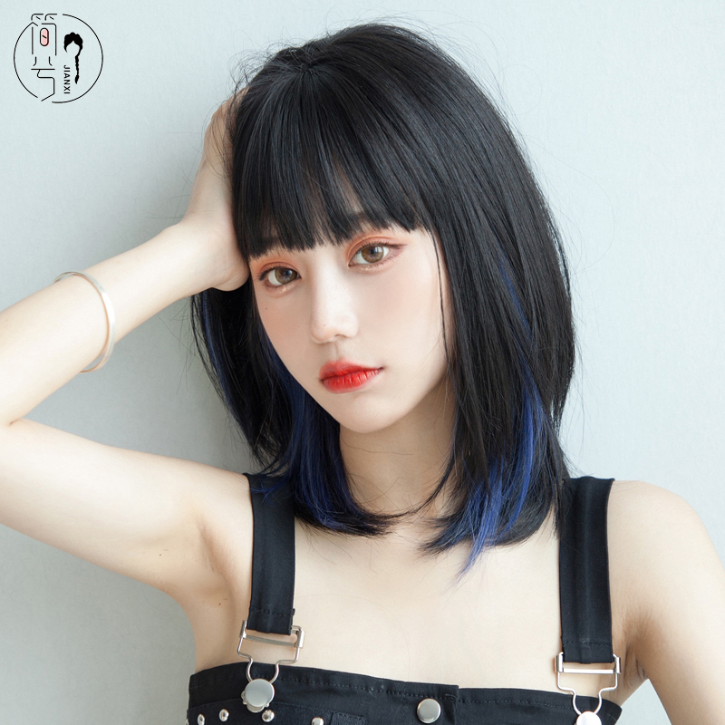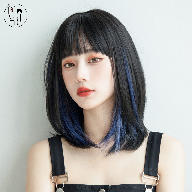 "Jane" hanging ear dyeing wigs female short hair net red round face collarbone realistic natural full head set fake hair