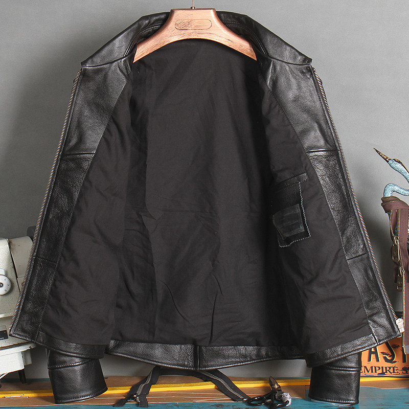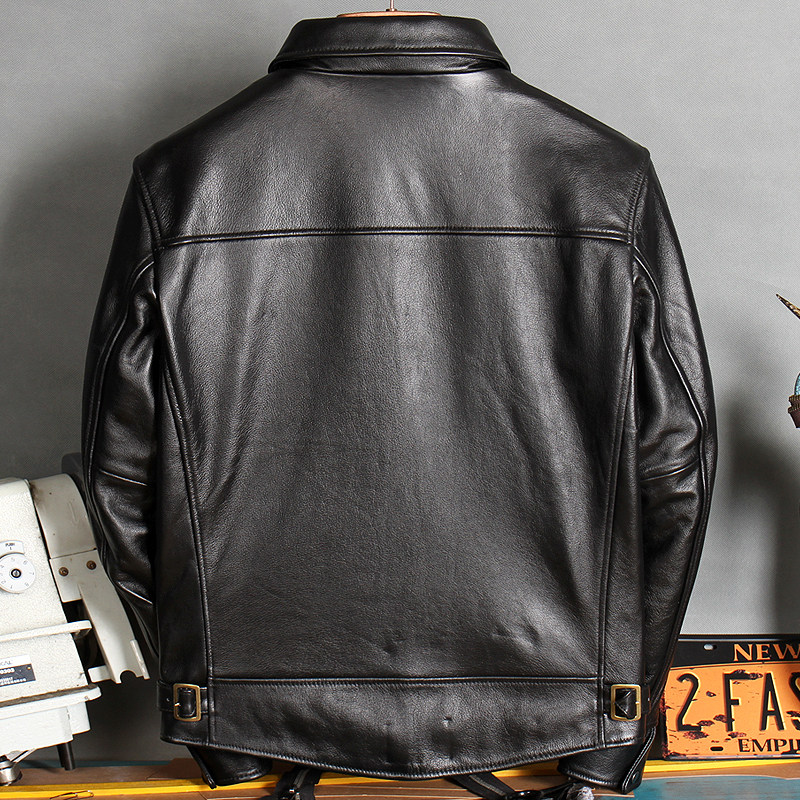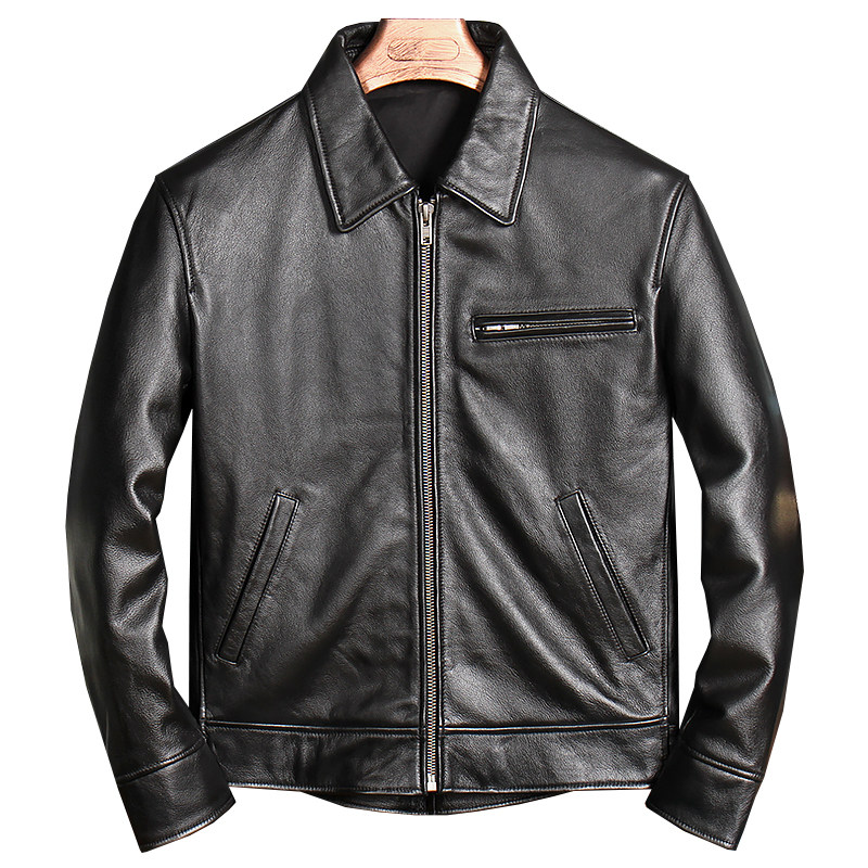Spring and Autumn new leather leather men's imported tire cowhide short leather jacket lapel business casual men's jacket