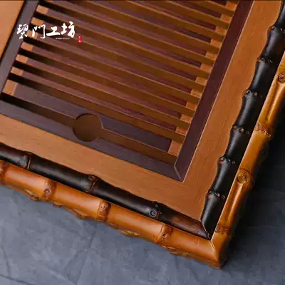 Blue Gate workshop original bamboo whip tea tray Bamboo pot holder Household Kung Fu tea table Zen small tea sea simple dry bubble table