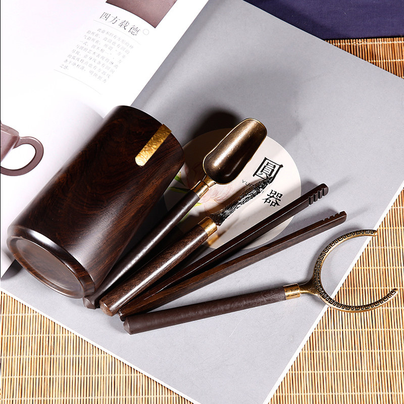Yixing Purple Sand Pot Tea Tea Teapot Tea Duct Accessories Tea Spoon Black Sandalwood Tea Road Cylinder Six Gentlemen