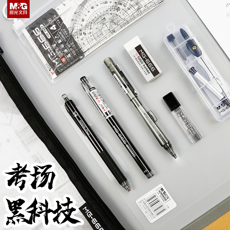 Morning light stationery black tech exam kit exam kit special speed dry middle sex pen 2b coated pencil middle school students college students take the gaokao in the examination and compasses triangle ruler