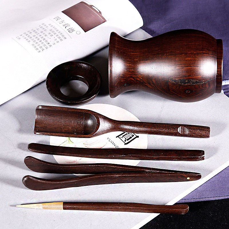 Yixing Purple sand pot Tea set Teapot accessories Tea spoon Natural high-end solid wood black sandalwood tea ceremony six gentlemen