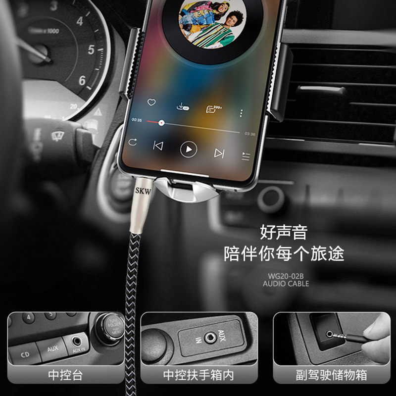 SKW AUX Audio Line 3 5mm Gong to Burn Grade Silver cell phone computer sound connecting line for car-in-car