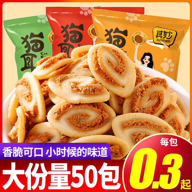 Cat ears Childhood nostalgia Cat ears crisp small package bagged net red office snacks Hunger supper Whole box gift package