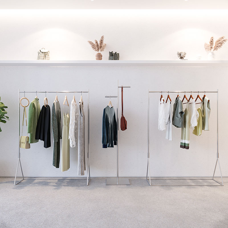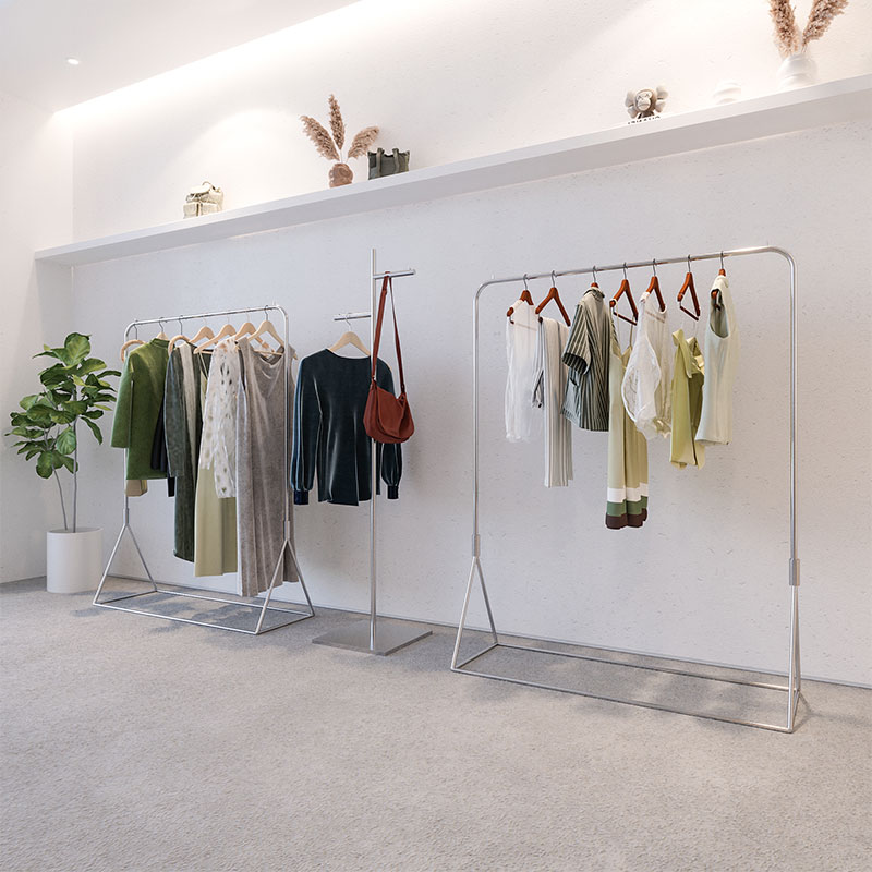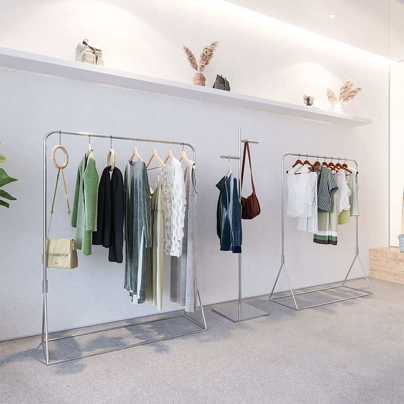 Clothing Store Show Shelf Ground Style Hang Clothes Rack Stainless Steel Silver Hanging Clothes Hanger Women's Clothing Store Display Shelf-Taobao