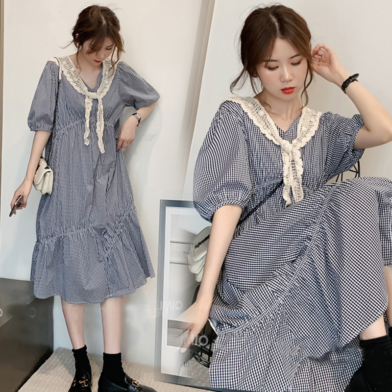 Pregnant women summer dress fashion suit stylish 2023 new summer plaid dress large - yard long skirt