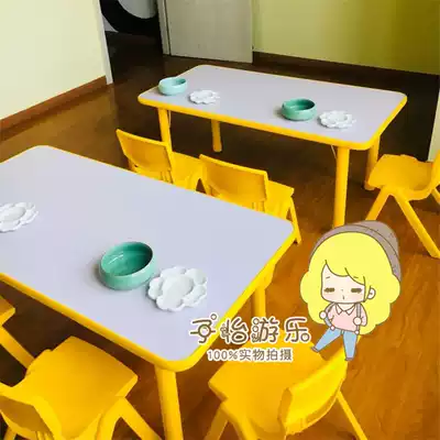 New kindergarten early education center lifting and fixing painting classroom fireproof board rectangular table children's iron chair direct sales
