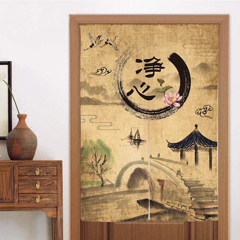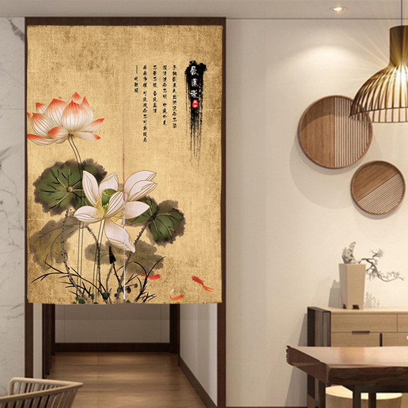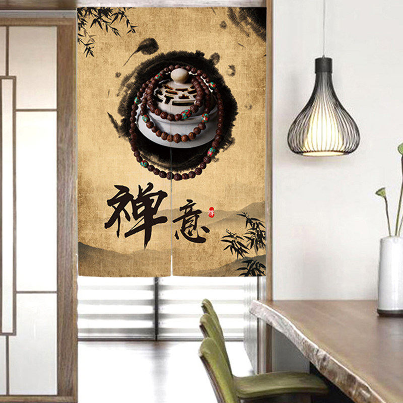 Retro High-end Cotton Hemp Cloth Art Door Curtain Chinese Zen half-curtain Kitchen Bedroom Partition Window Home Free of perforated hanging curtain