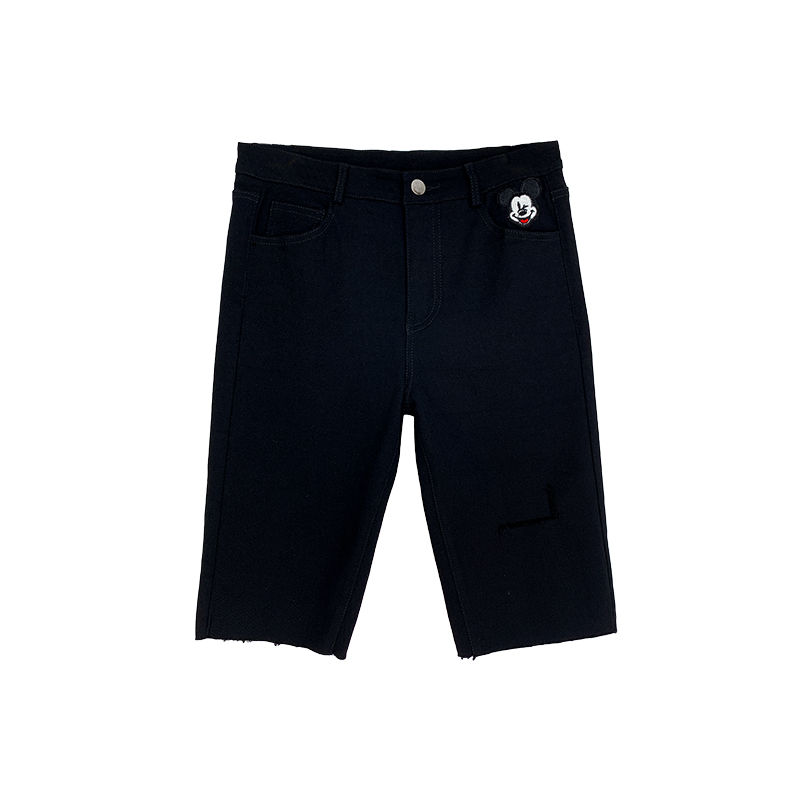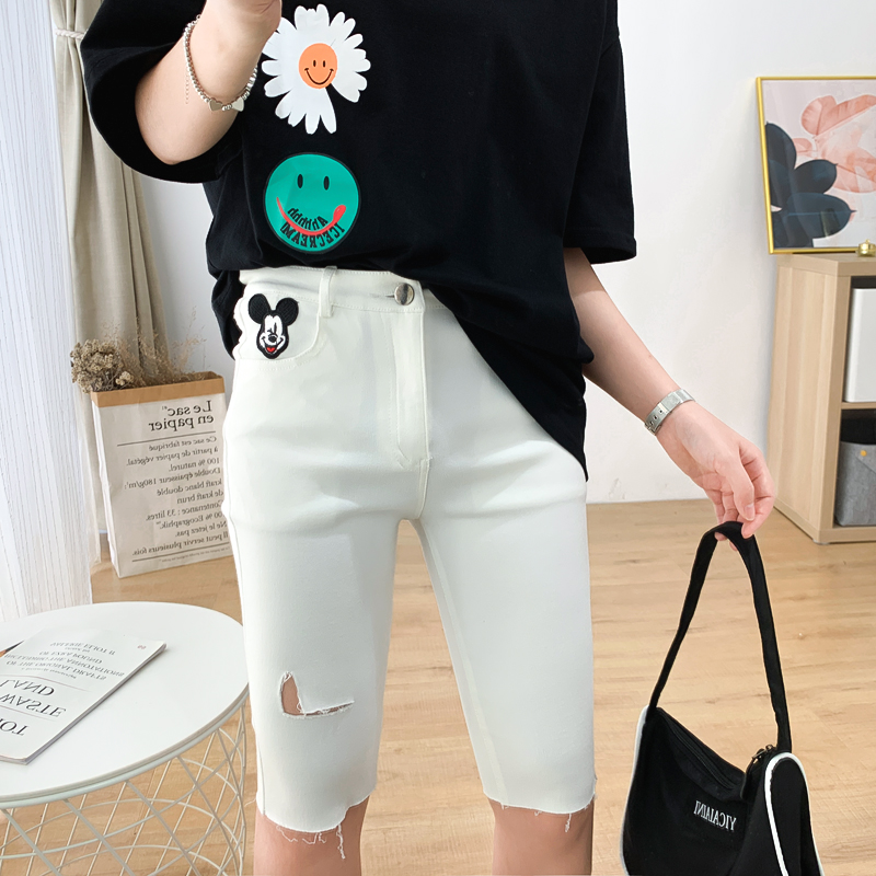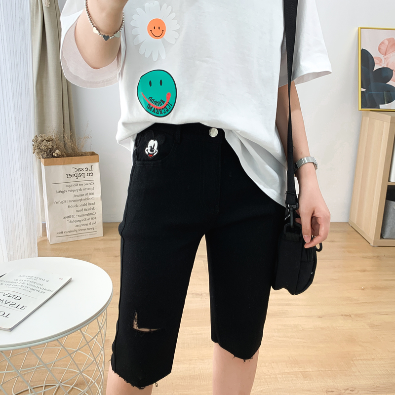 Large Size Code Breaking Hole 50% Pants Woman Straight Cylinder Port Taste Shorts Fat Sister Outside Wearing Riding Tight Black White Net Red 50% Pants