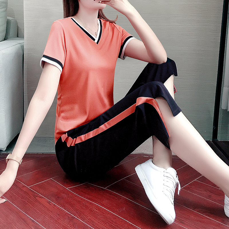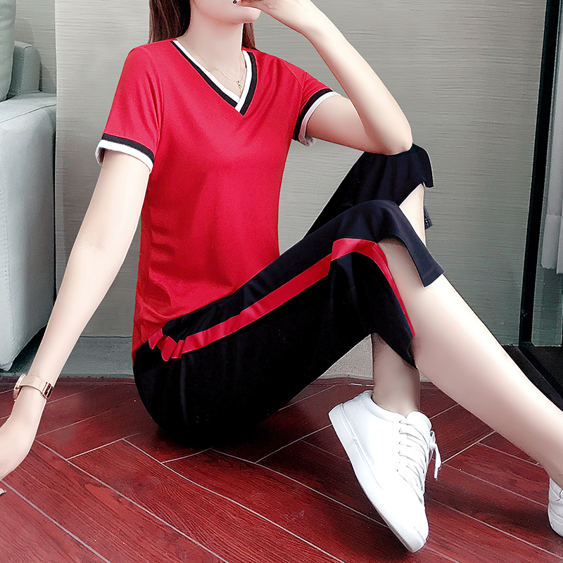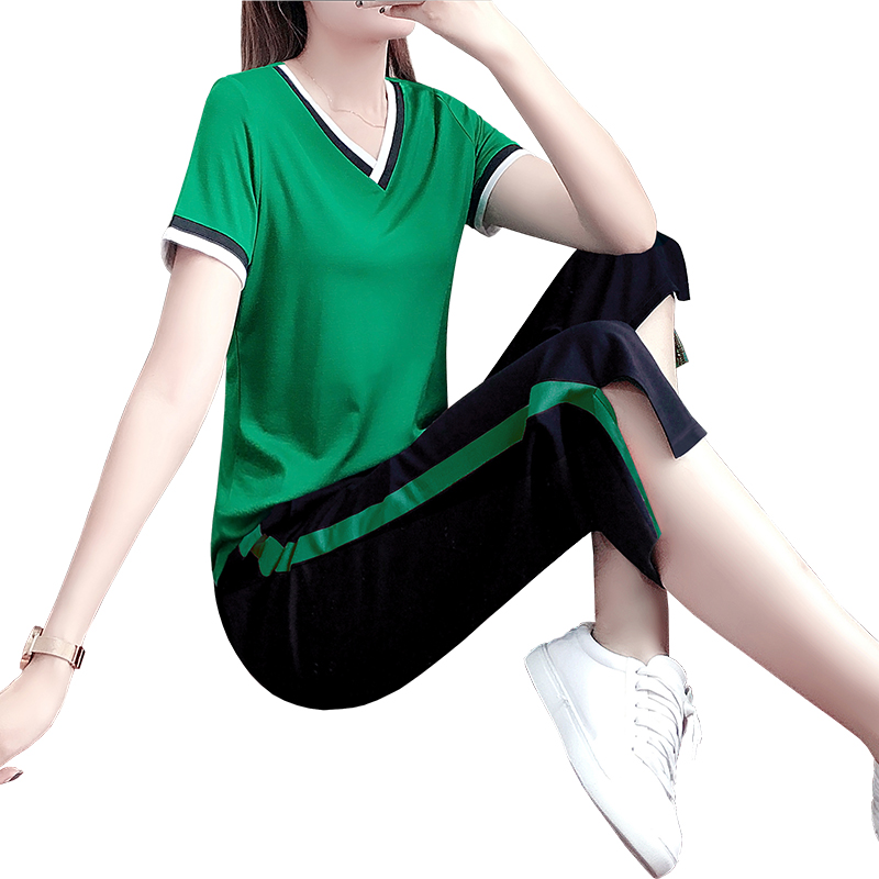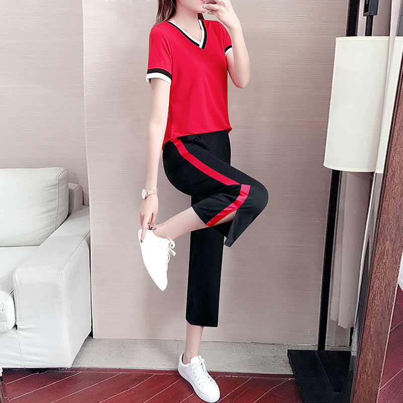 Sportswear suit female 2022 summer new loose fashion wide-leg nine-point pants summer casual clothes two-piece tide