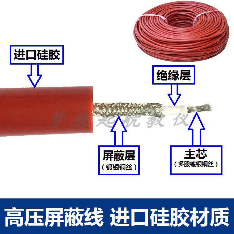 GYX-10 30KV100KV high voltage test silicone wire cable DC AC50KV high voltage wire shielded wire