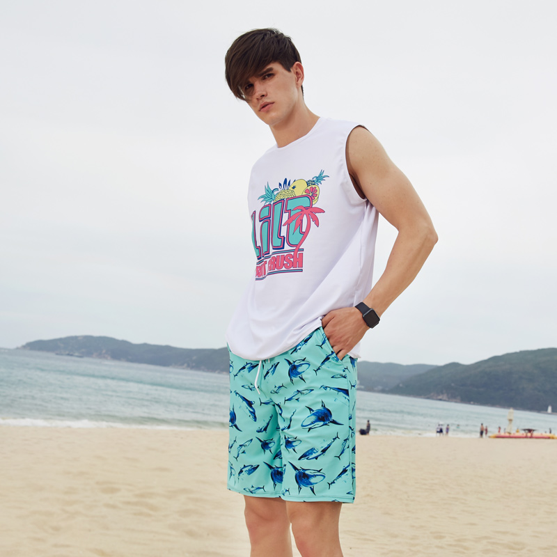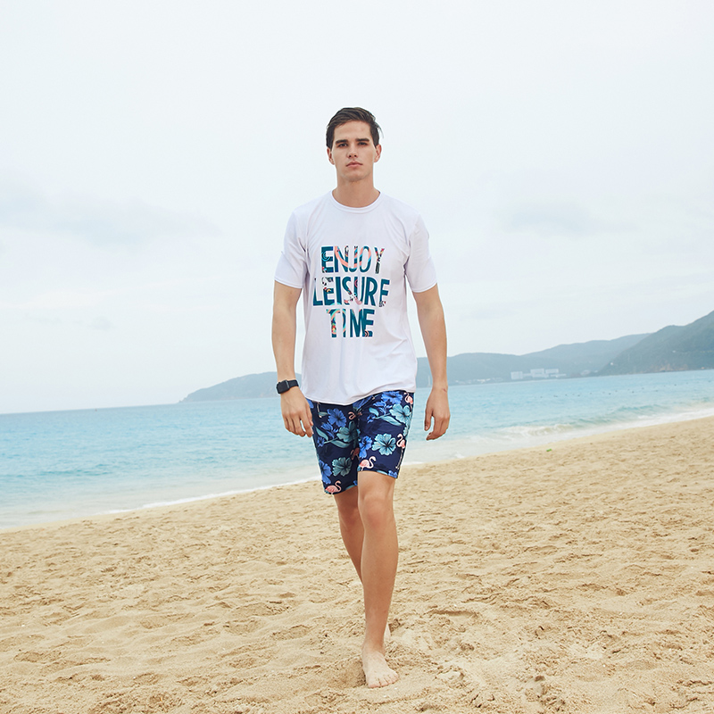 Beach pants men's 2020 new summer tide Hawaii seaside Korean version couple vacation large size loose printing T-shirt