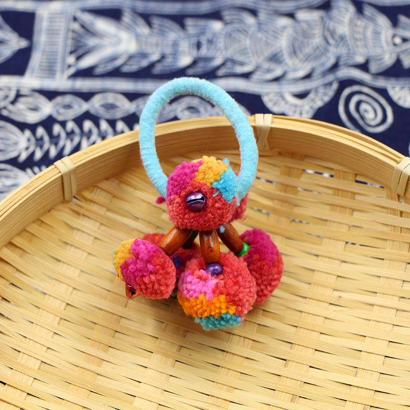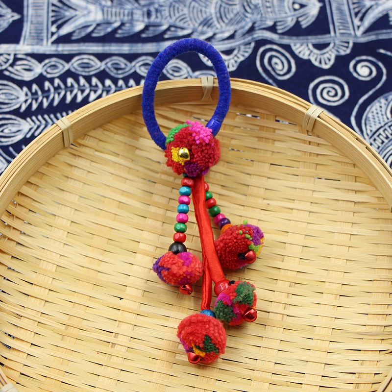 Ethnic style cute handmade color rubber band hair ball hair ring headwear female net red hair ring hair accessories female