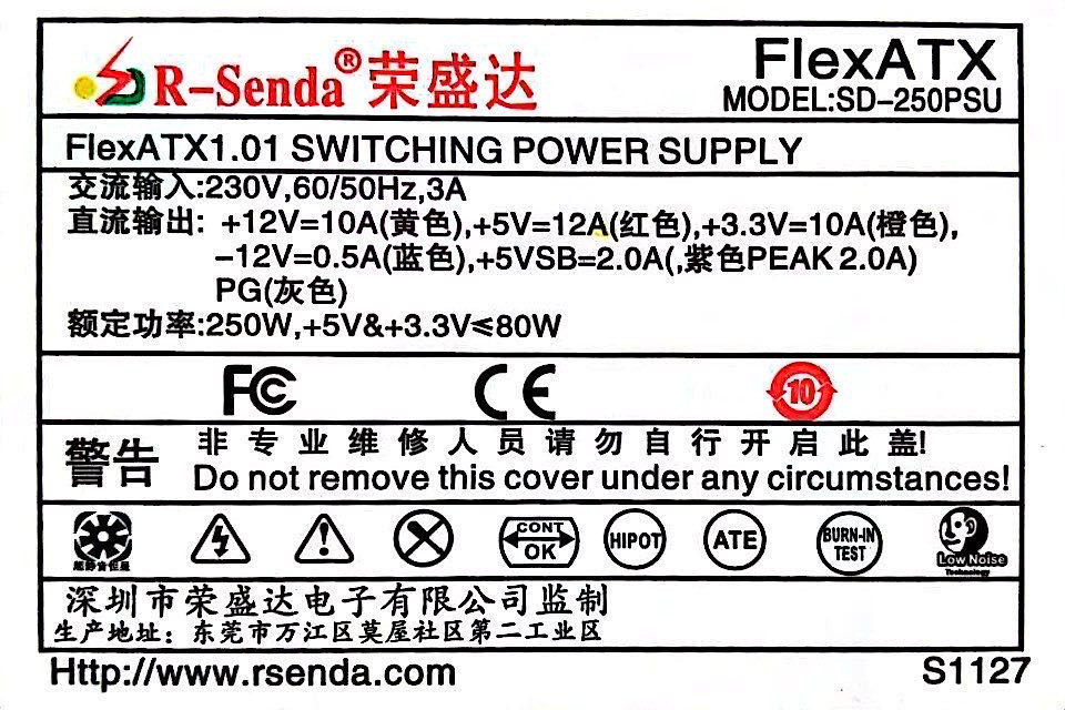 Rongshengda SD- 250PSU rated 250W Flex small 1U power POS machine industrial computer power mute and stable
