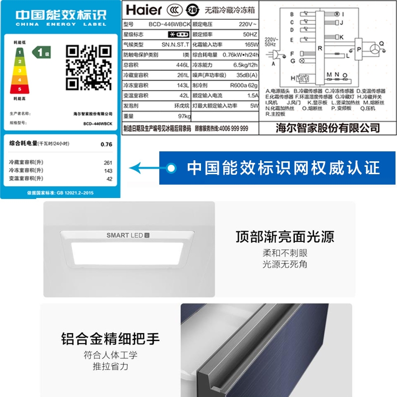 Haier Haier BCD-446WBCK method multi-door four-open frequency conversion air-cooled large frozen household electric refrigerator l