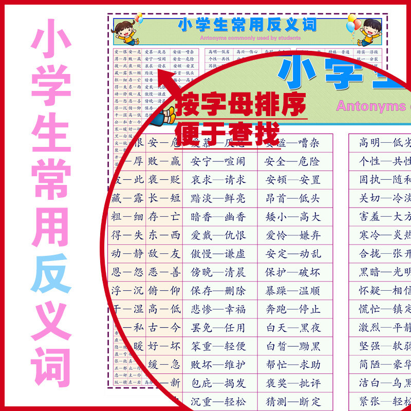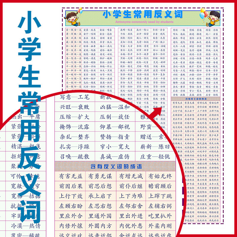 Primary school students' synonyms and antonyms Daquan wall chart idiom classification wall stickers Chinese words learning posters