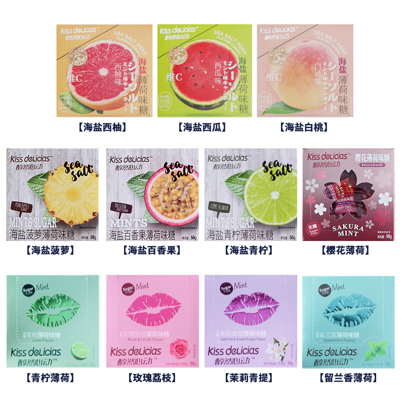 Haiyi Alcoholic Heartbeat Sugar-free Mint Candy Lime Sea Salt Passion Fruit Pineapple Rose Lychee Jasmine Powder Boxed