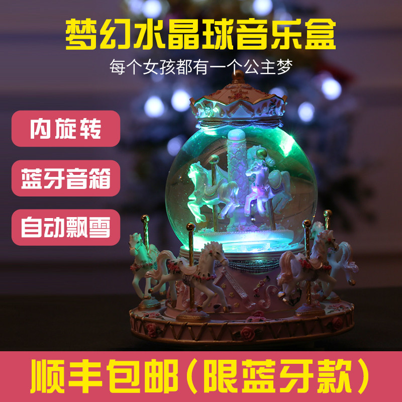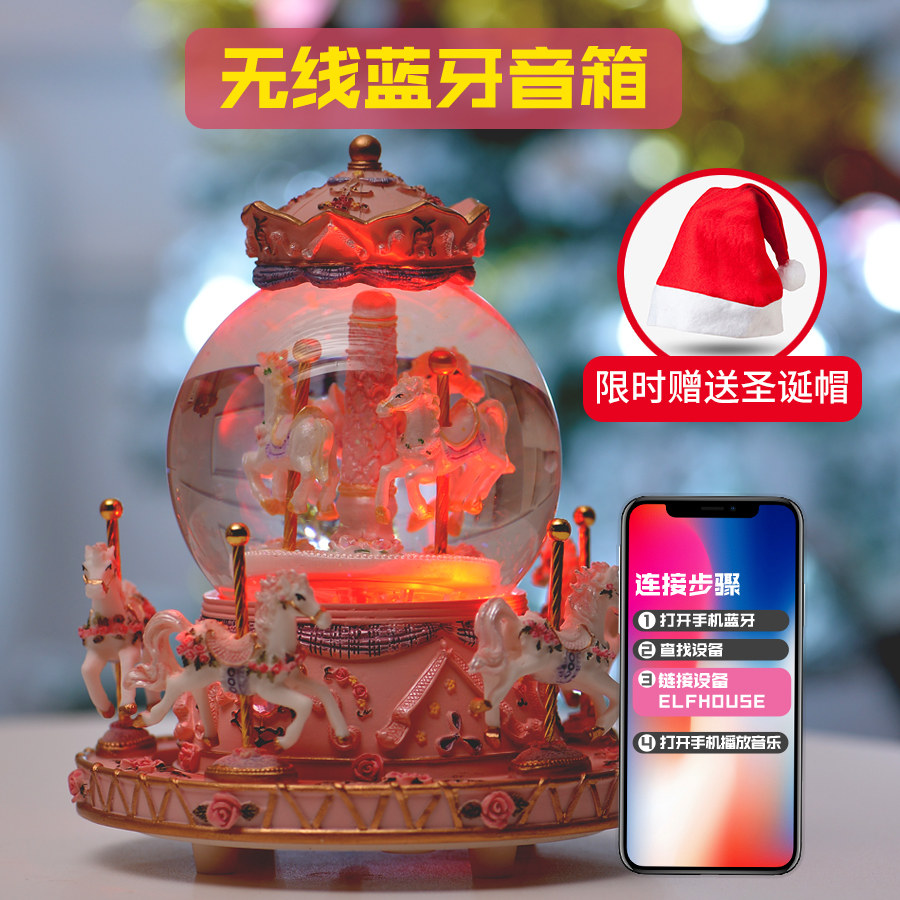 Christmas Carousel Music Box Girl Smart Bayonet Bluetooth Music Box Crystal Ball Electric Electronic Compact