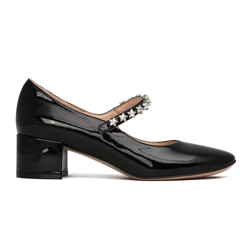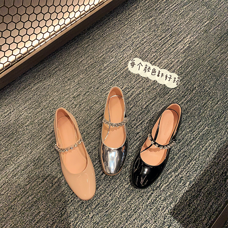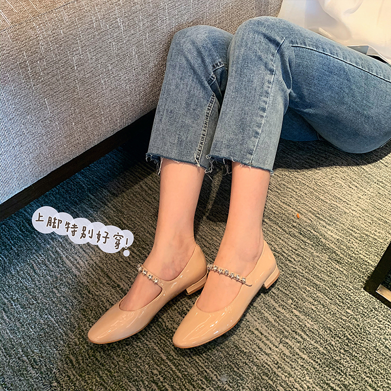 (Lv Xiaobu)Good warm oil on the feet Vintage sweet Mary Jane small leather shoes Patent leather low-heeled shoes thick-heeled shoes