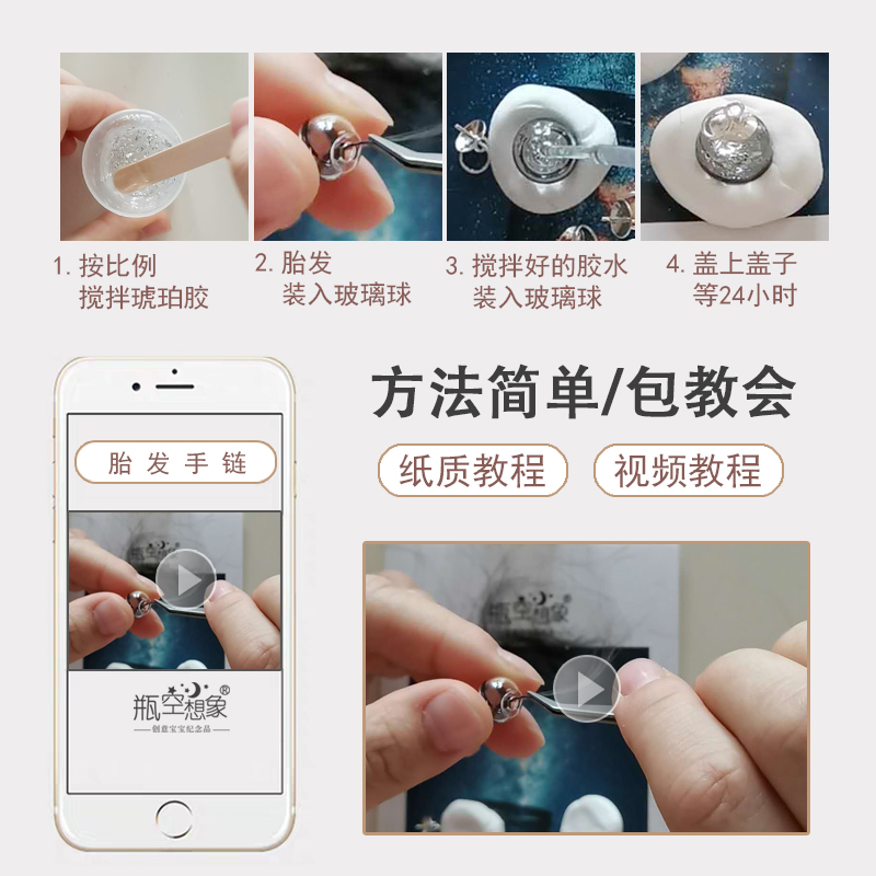 Pure silver baby fetal hair pendant diy material packageBaby baby fetal souvenirsMaking hair collection bracelet