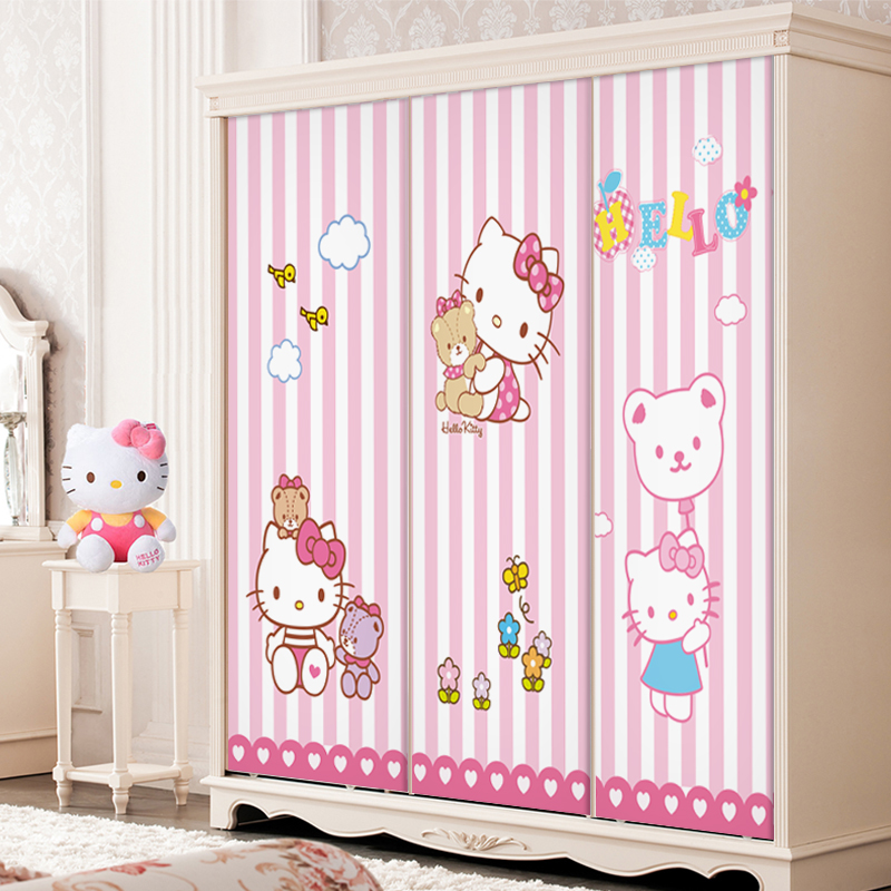 Cartoon children's wardrobe sliding door sticker self-adhesive girl bedroom glass sliding door renovation renovation sticker film all-inclusive