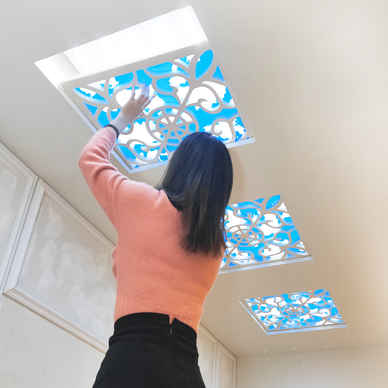 Carved board Custom lattice aerial background decoration Solid wood screen partition living room shape ceiling through the flower board