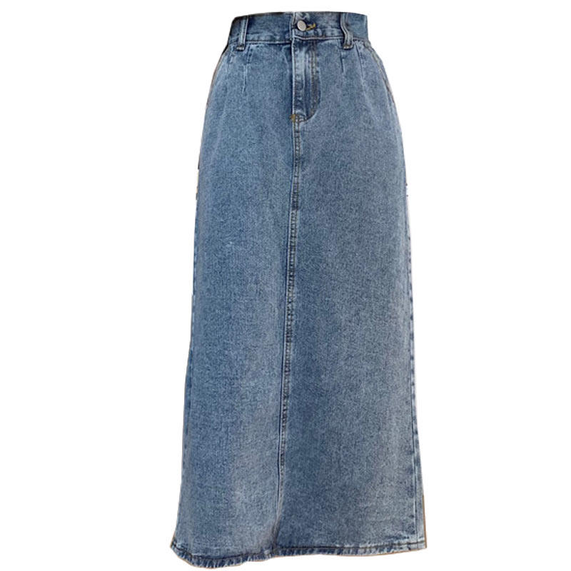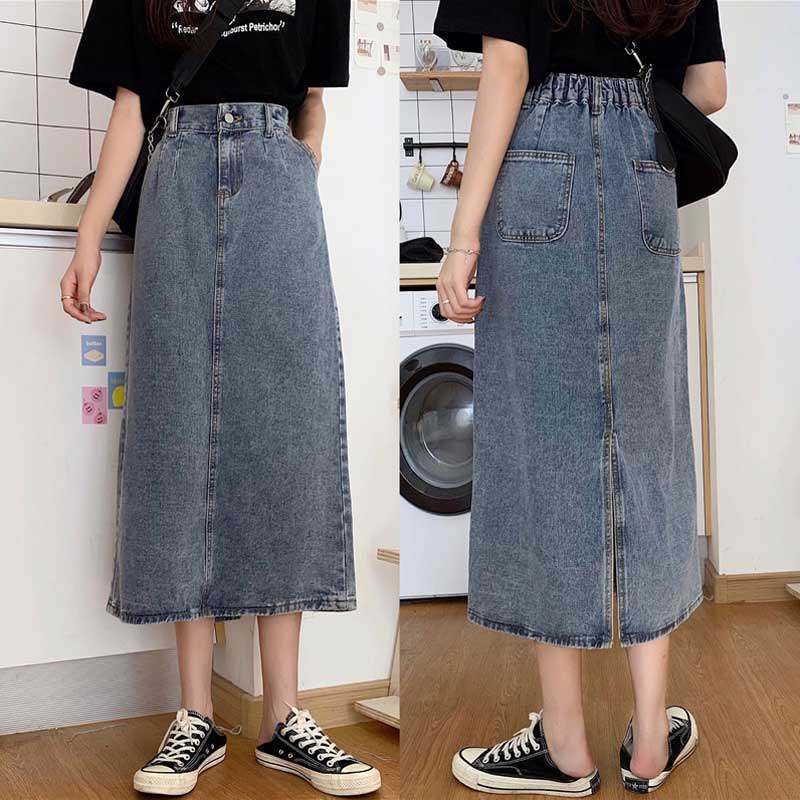 Large size denim skirt female fat mm medium-length version skirt new careful machine a word skirt loose waist long skirt after the fork