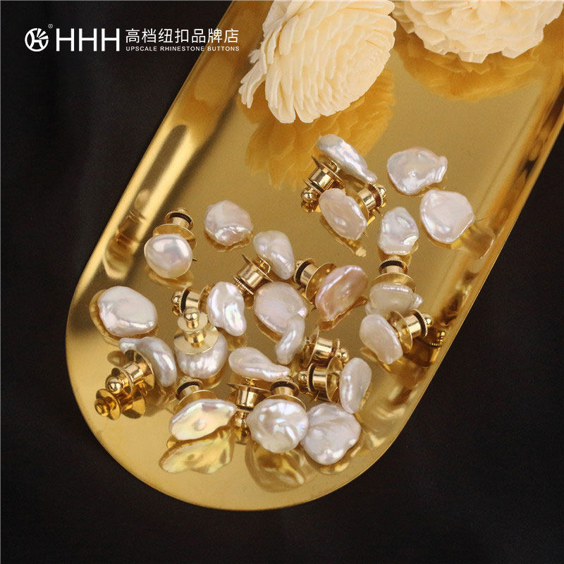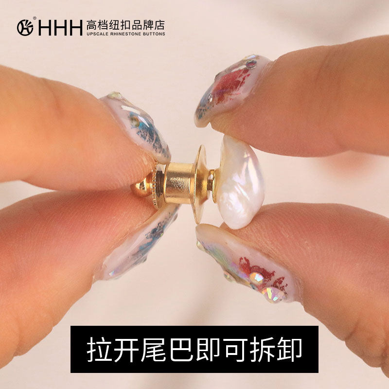 HHH high-grade pearl button free-seam anti-light buckle Natural pearl shirt small buckle pin small brooch decorative buckle