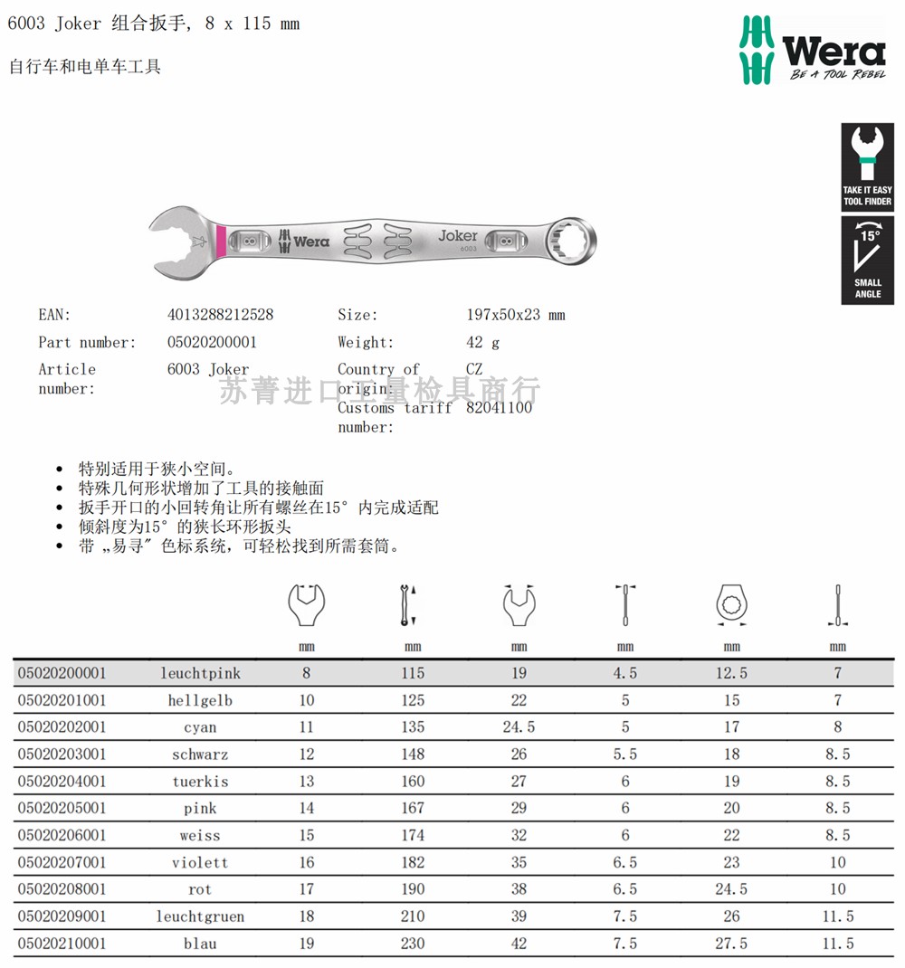 Germany wera Vera open dual-use wrench Auto repair plum wrench 6003 Joker combination plum wrench