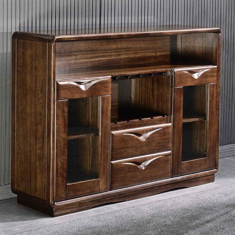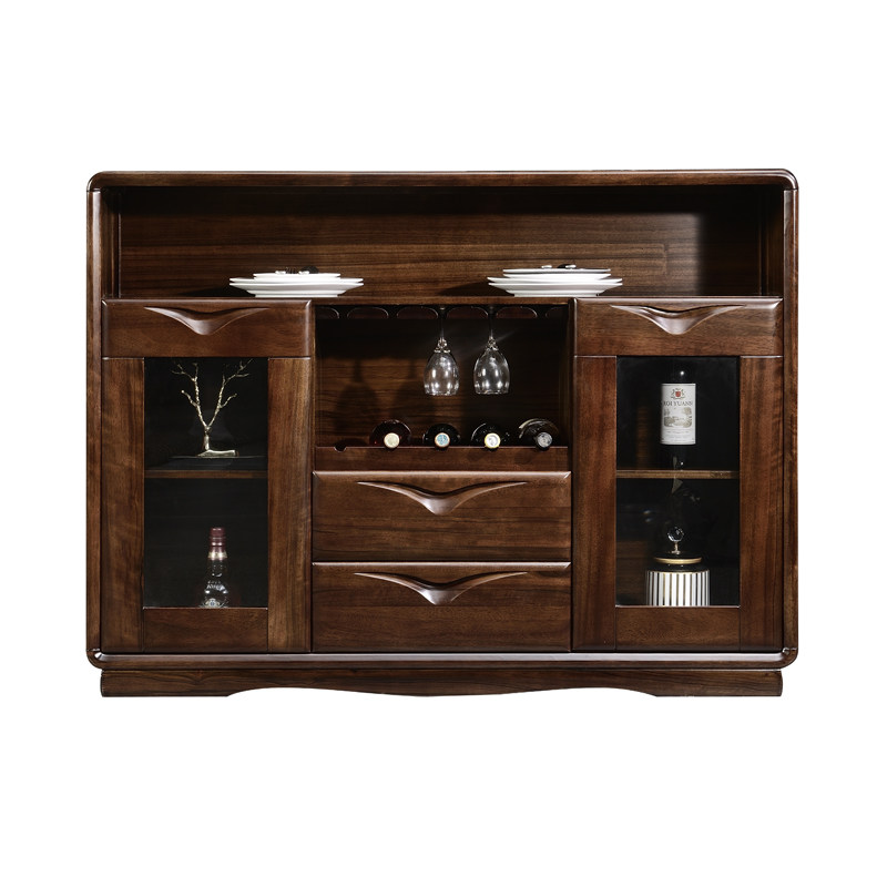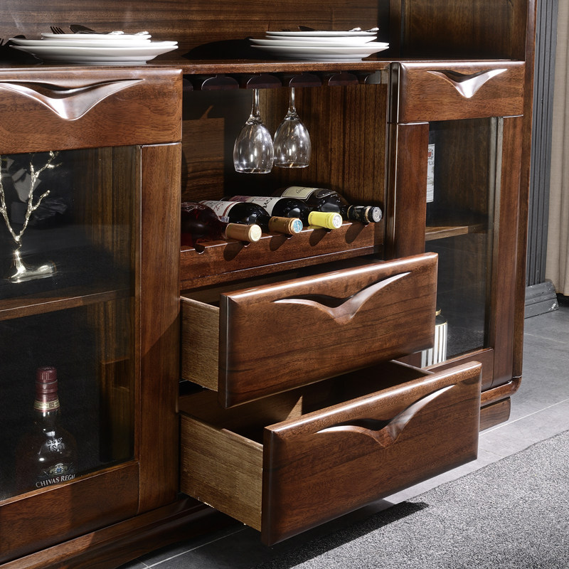 New Chinese style black walnut solid wood sideboard simple modern kitchen living room multi-functional economical wine cabinet