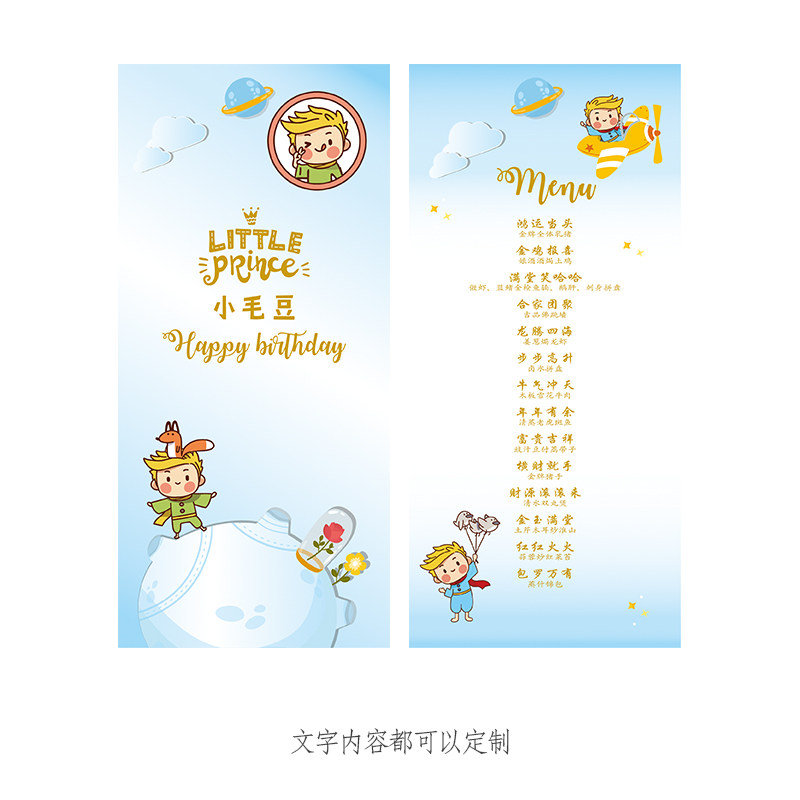 The little Prince's birthday 100-day birthday party menu process Thank you card custom-made Mori boy new product