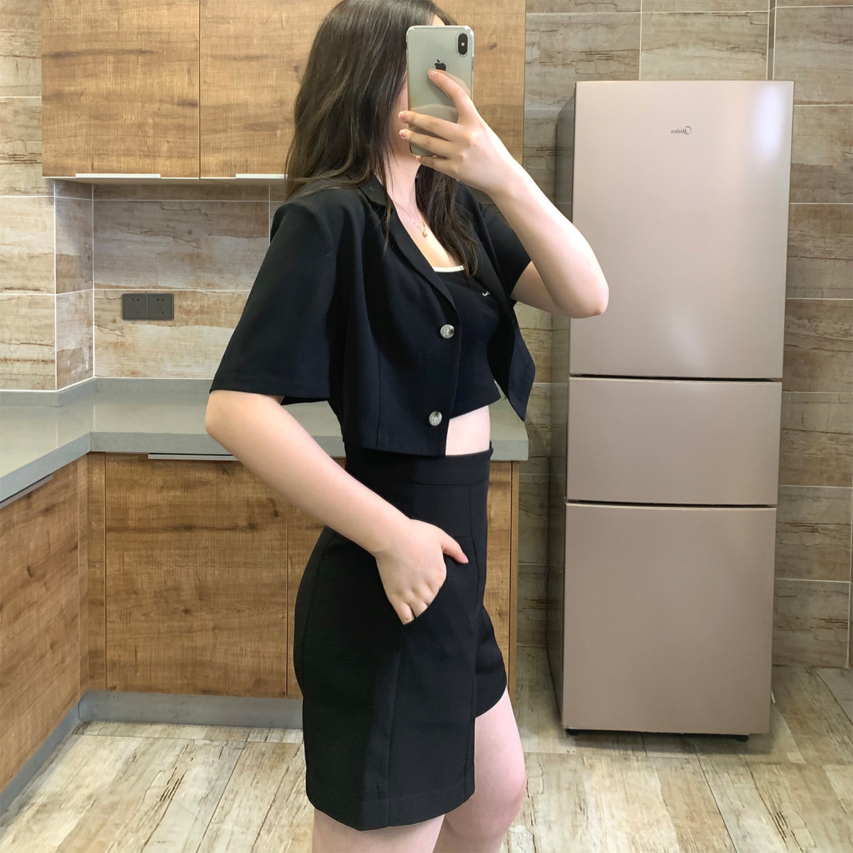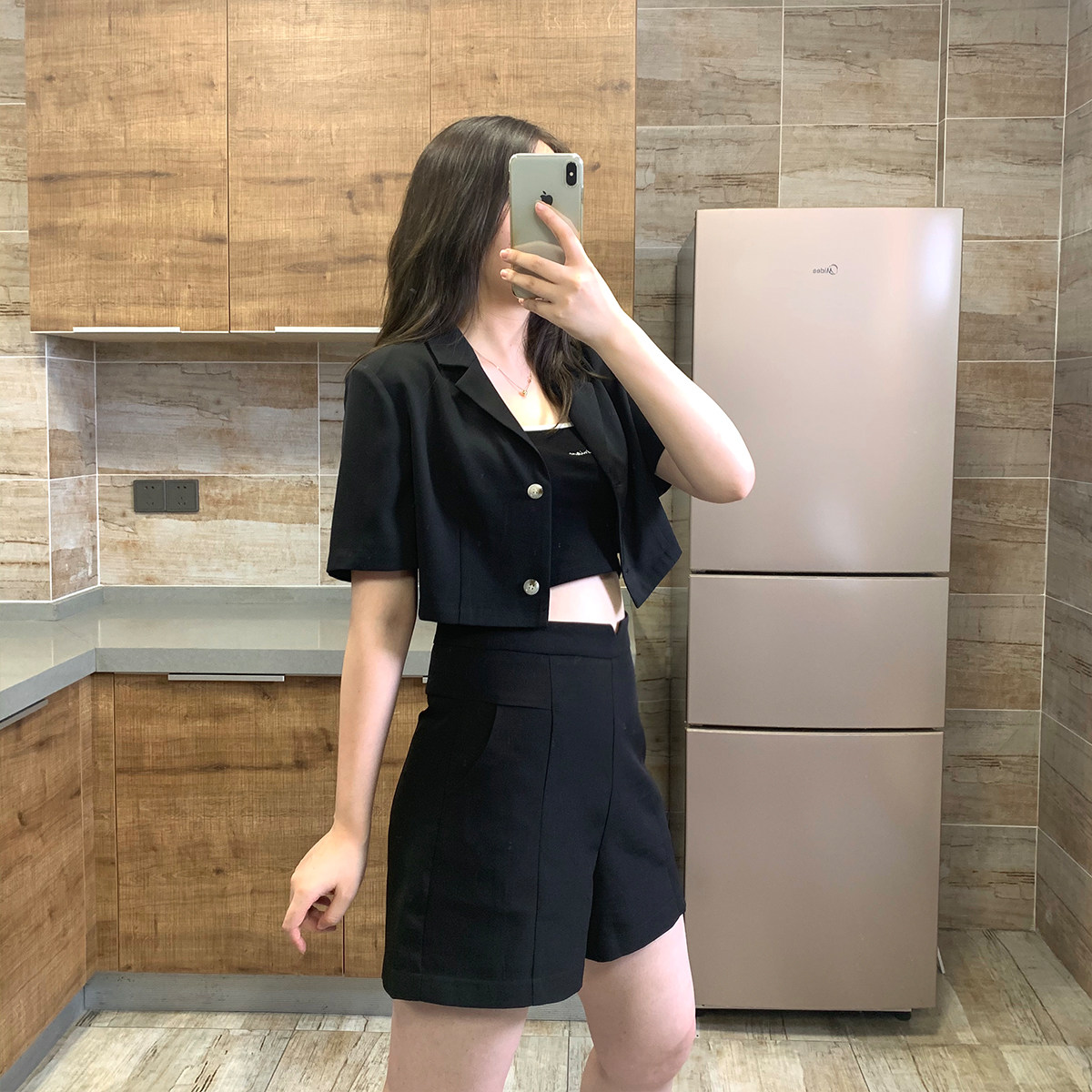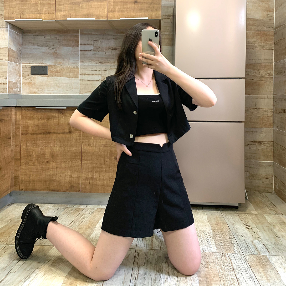 black shorts blazer white polo grey polo