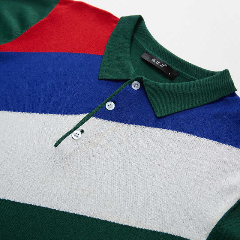 Summer ice silk knitted Polo shirt thin section cool Paul top net red trendy brand Korean version contrast color lapel t-shirt man