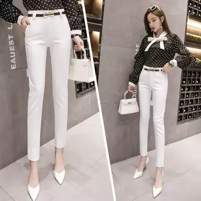 White suit pants women's hanging high waist ankle-length pants small man thin high 2021 summer Harlan pipe pants tide