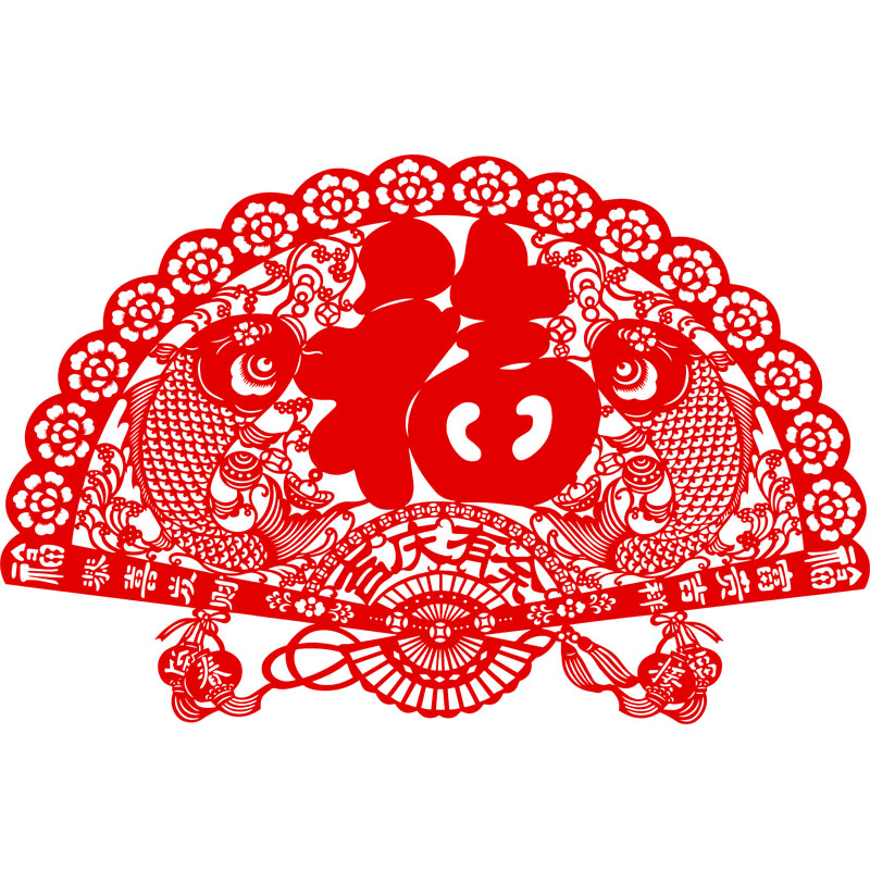 Traditional paper hollowed-out paper-cut paper window flower stickers Spring Festival Fortwork wall decoration painting Chinese wind great Baifu fan