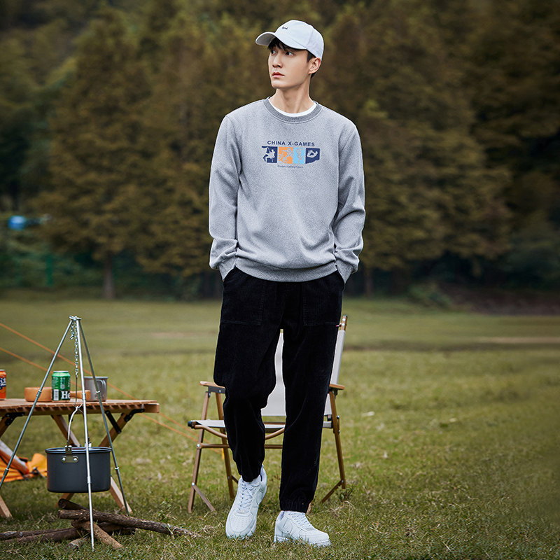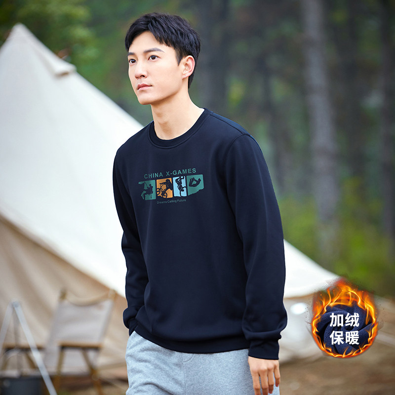 Trailblazer 350g heavy winter fleece sweater men's pure cotton round neck pullover long sleeve spring and autumn sports jacket