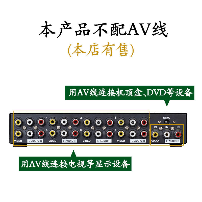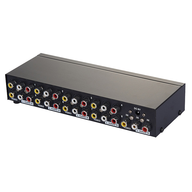 AV splitter 1 into 8 out, one point eight, one into eight out, audio and video switcher, one into four out av converter